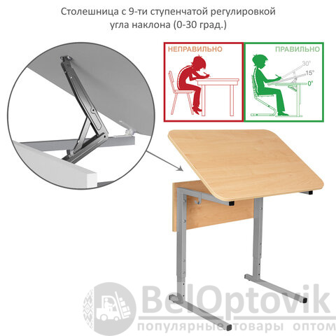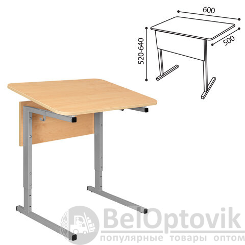 Стол-парта 1-местный, регулируемый угол, СУТ.54-01, 600х500х520-640 мм, рост 2-4, серый каркас, ЛДСП клён