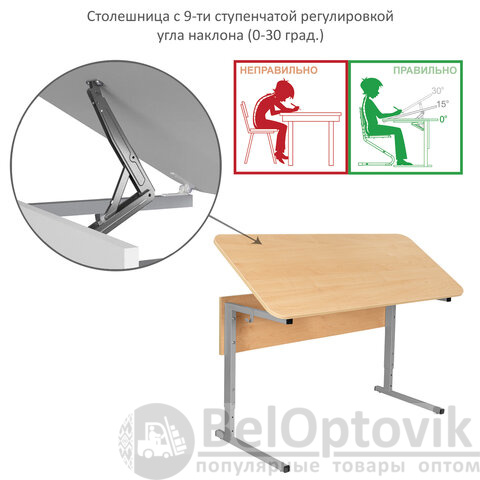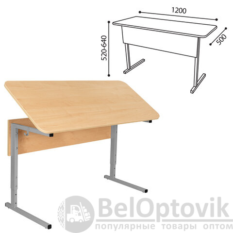 Стол-парта 2-местный, регулируемый угол, СУТ.55-01, 1200х500х520-640 мм, рост 2-4, серый каркас, ЛДСП клён
