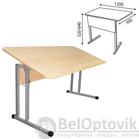 Стол-парта 2-местный, регулируемый угол, "Умник" 1200х500х520-640мм, рост 2-4, серый каркас, ЛДСП клён