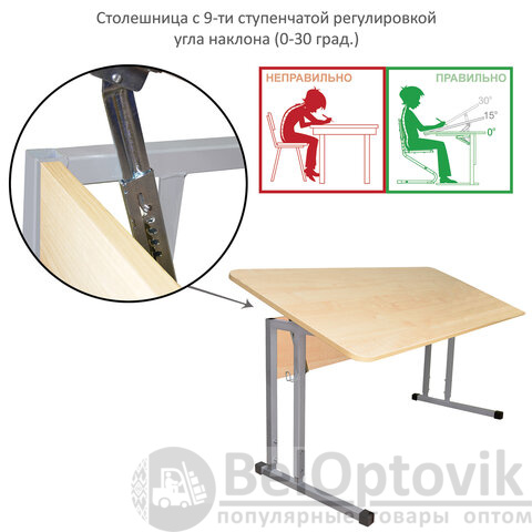 Угол наклона столешницы имеет 9 положений, регулируется от 0 до 30°.