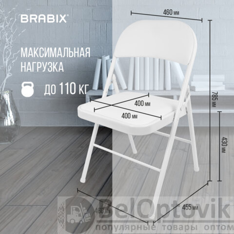 Стул складной BRABIX "Golf Plus CF-003 КОМФОРТ", белый каркас, кожзам белый, 532888