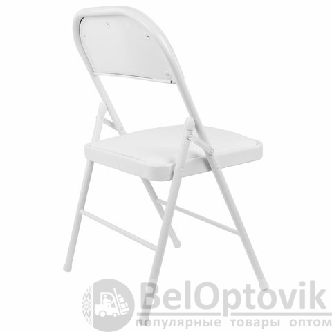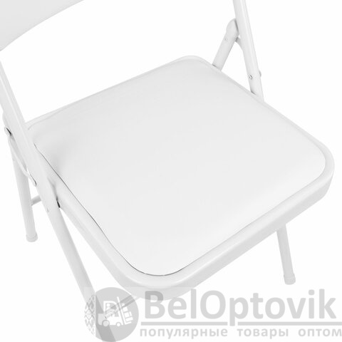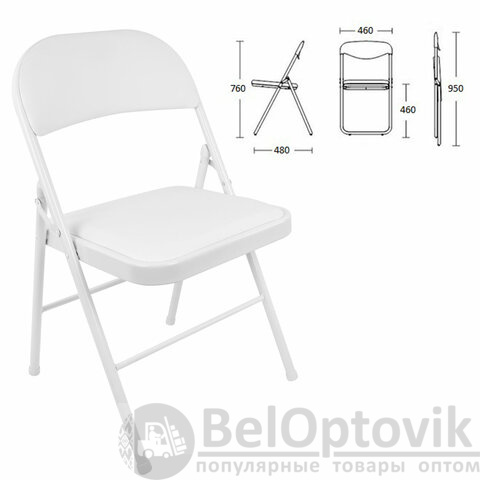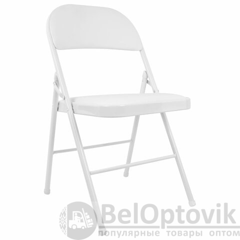 Материал обивки - качественный кожзаменитель с повышенной износостойкостью. Складная конструкция сэкономит место при перевозке и хранении. Прочная металлическая рама и металлическое основание сиденья обеспечат долговечность эксплуатации, а пластиковые насадки на ножках не дадут испортить напольное покрытие. В набивке спинки и сиденья использован поролон высокой плотности. Стул способен выдерживать нагрузку до 110 кг.