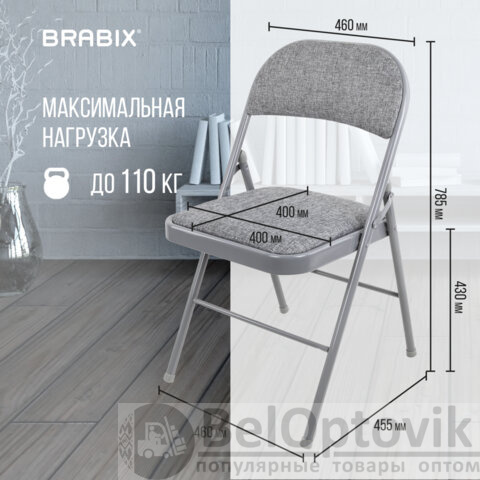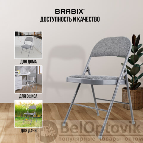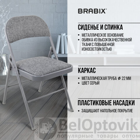 Стул складной BRABIX "Golf Plus CF-003 КОМФОРТ", серый каркас, серая ткань, 532890