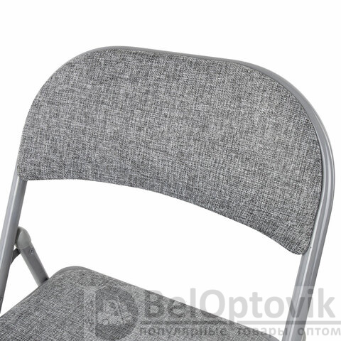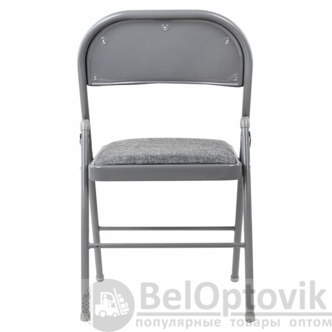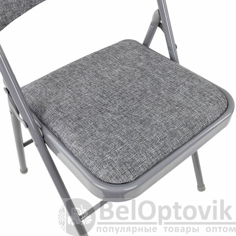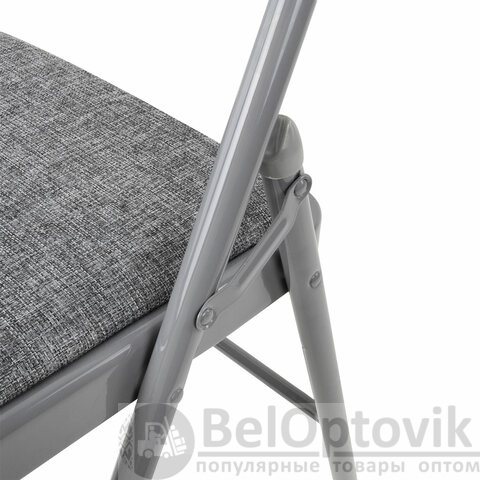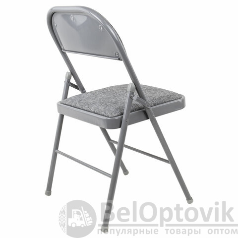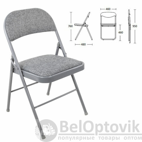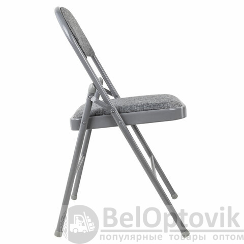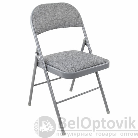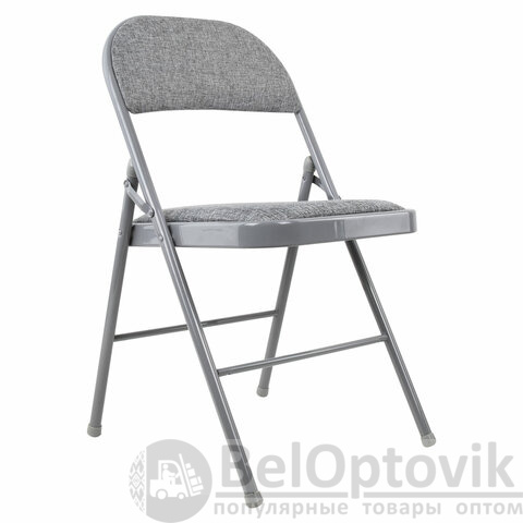 Материал обивки - высококачественная ткань с повышенной износостойкостью. Складная конструкция сэкономит место при перевозке и хранении. Прочная металлическая рама и металлическое основание сиденья обеспечат долговечность эксплуатации, а пластиковые насадки на ножках не дадут испортить напольное покрытие. В набивке спинки и сиденья использован поролон высокой плотности. Стул способен выдерживать нагрузку до 110 кг.