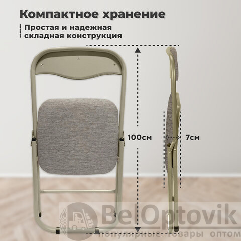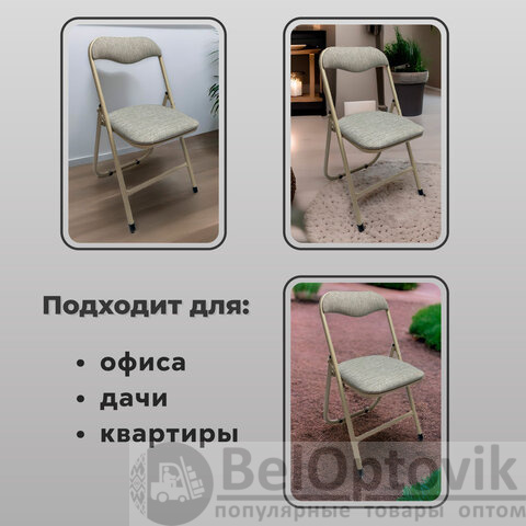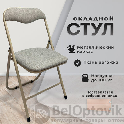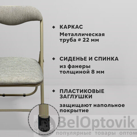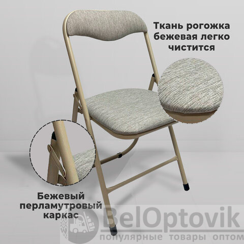 Стул складной для дома и офиса РС04, бежевый перламутровый каркас, рогожка бежевая