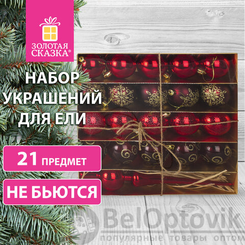 Шары новогодние ёлочные "Red Wine" НАБОР 21 предмет, пластик, красный, ЗОЛОТАЯ СКАЗКА, 591107