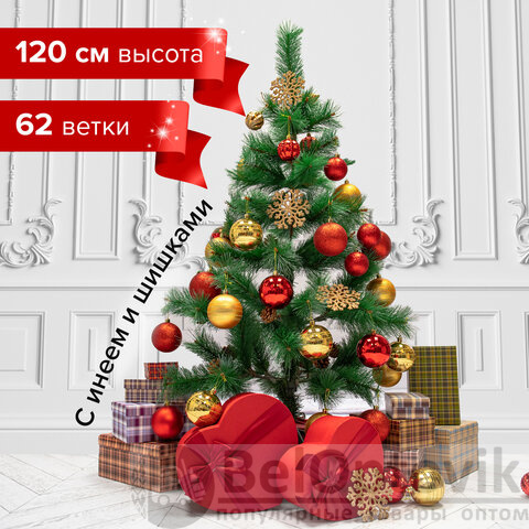 Ель новогодняя искусственная "Velvet Pinewood" 120 см, с инеем и шишками, ПВХ, ЗОЛОТАЯ СКАЗКА, 591702
