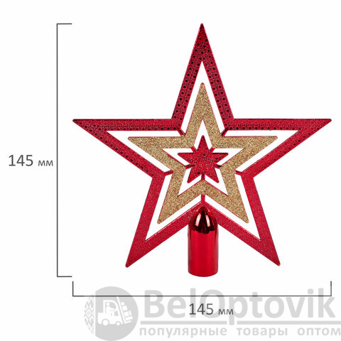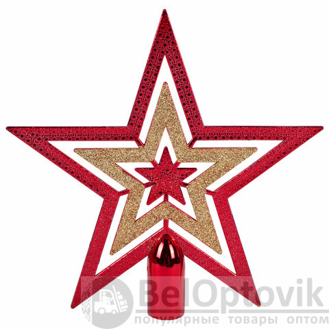 1 шт. глянцевое украшение на верхушку ели в форме пятиконечной звезды золотисто-красного цвета (15 см);