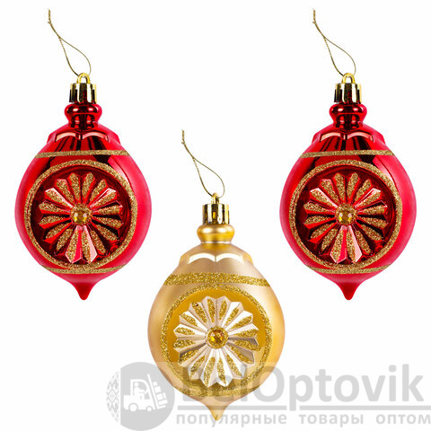 В верхней части декоративные украшения имеют петлю для подвешивания изделия. Декоративные украшения из набора могут использоваться для украшения новогодней ели или в качестве новогоднего сувенира. Набор упакован в картонную коробку с пластиковой крышкой и крафтовым наполнителем на дне коробки, дополнительно упакован в индивидуальный трехслойный гофрокороб.