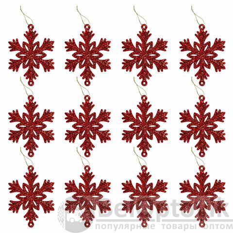 12 шт. снежинки красного цвета с блёстками (6 см);