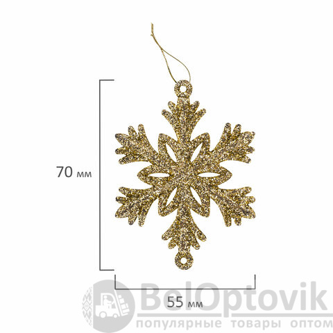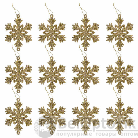 12 шт. снежинки золотистого цвета с блёстками (6 см);
