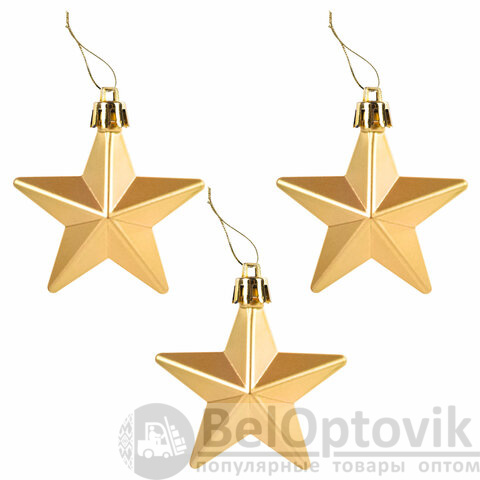 3 шт. матовых украшения в форме пятиконечной звезды золотистого цвета (5 см);