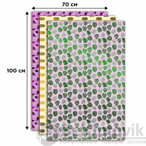 Бумага упаковочная подарочная С ЭФФЕКТАМИ НАБОР 3 шт., "Colorful Tropics", 70х100 см, ЗОЛОТАЯ СКАЗКА, 591945