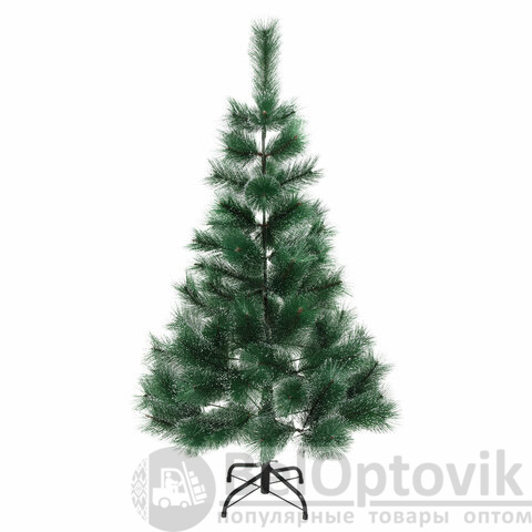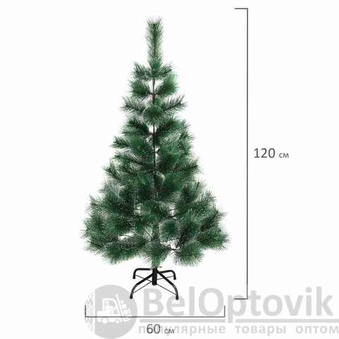 Ель искусственная напольная представляет собой конструкцию из металлического каркаса и закрепляемых на нем ветвей. Материал хвои - полиэтилентерефталат. Цвет хвои - зеленый. Кончики иголок декорированы "искусственным инеем". Высота ели - 120 см. Диаметр нижнего яруса - 60 см. Количество веток - 80.
