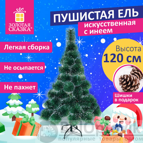 Ель новогодняя искусственная "Пушистая" 120 см, с инеем и шишками, зеленая, ЗОЛОТАЯ СКАЗКА, 592043
