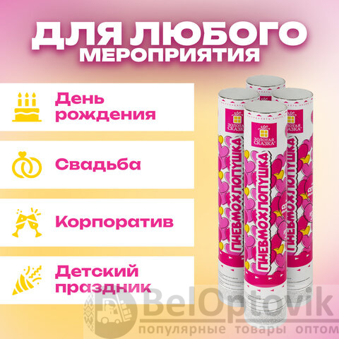Создайте фейерверк из конфетти в виде сердечек с помощью комплекта хлопушек ЗОЛОТАЯ СКАЗКА! Подарите яркое настроение всем гостям!