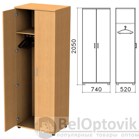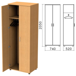 Шкаф для одежды глубиной - 520 мм (с учетом фасадов) оборудован стационарной штангой, расположенной по ширине шкафа, и отделением для головных уборов. Регулируемые опоры позволяют компенсировать возможные неровности пола.