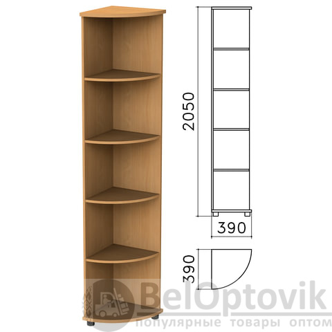Шкаф (стеллаж) угловой "Монолит", 390х390х2050 мм, 4 полки, цвет бук бавария, УМ46.1
