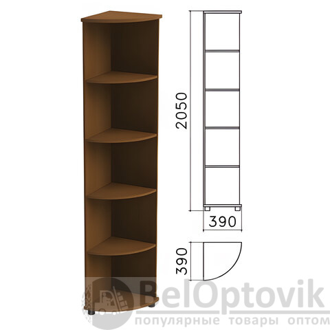 Шкаф (стеллаж) угловой "Монолит", 390х390х2050 мм, 4 полки, цвет орех гварнери, УМ46.3