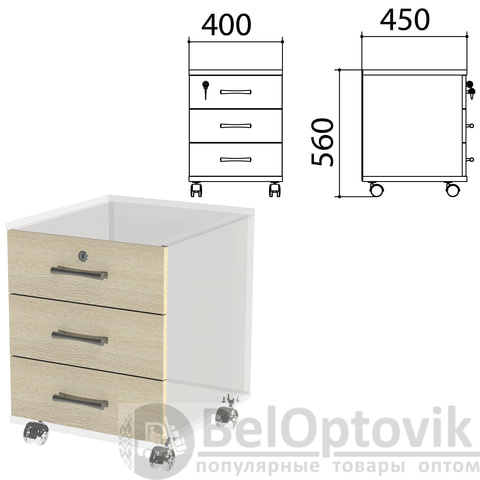 Фасады ящиков для тумбы подкатной "Канц" 400х450х560 мм, цвет дуб молочный, ТК29.15.2