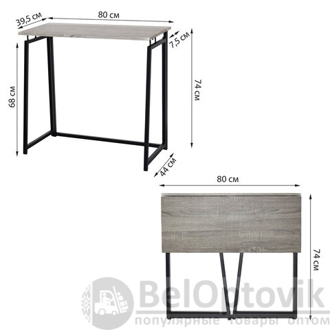 Стол на металлокаркасе BRABIX "LOFT CD-001", 800х440х740 мм, складной, цвет дуб антик, 641210
