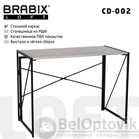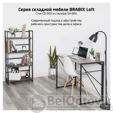 "LOFT CD-002" от бренда BRABIX - компактный, складной стол на металлокаркасе с крышкой из МДФ в стиле лофт, подойдет для любого интерьера, а возможность легко сложить и убрать - сделают этот предмет мебели незаменимым.