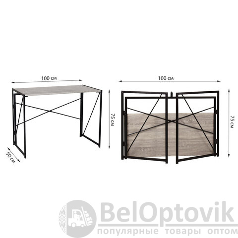 Стол на металлокаркасе BRABIX "LOFT CD-002", 1000х500х750 мм, складной, цвет дуб антик, 641213