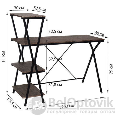 Стол на металлокаркасе BRABIX "LOFT CD-004", 1200х535х1110 мм, 3 полки, цвет морёный дуб, 641218