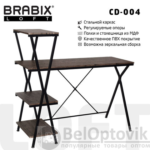 Функциональность стола обеспечивается тремя дополнительными полками, где можно хранить необходимые для вашей работы вещи: от канцелярских принадлежностей и книг до ноутбука. Оптимальные габариты BRABIX "LOFT CD-004" подходят даже для небольших помещений.