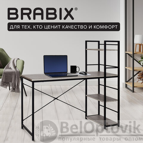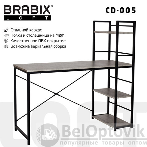 Полнофункциональный стол BRABIX LOFT CD-005 - это сочетание письменного стола и стеллажа. Высококачественные материалы, стильный дизайн и продуманная эргономика - традиционный подход к мебели BRABIX.