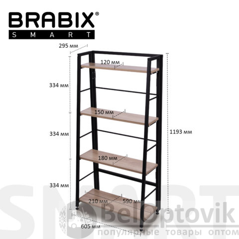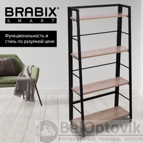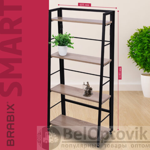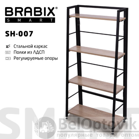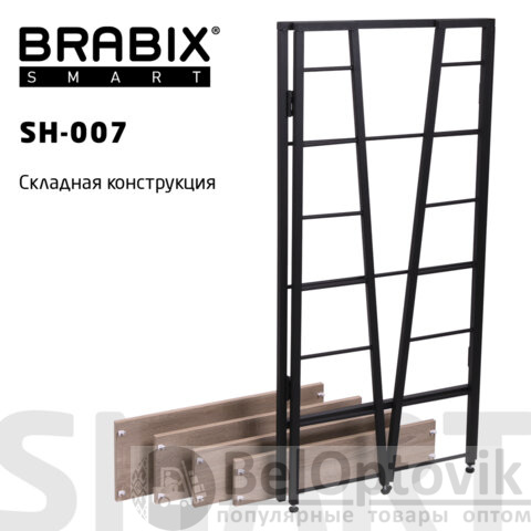 Стеллаж BRABIX "Smart SH-007", 605х295х1193 мм, ЛОФТ, трапеция, складной, металл/ЛДСП дуб, каркас черный, 641872