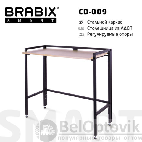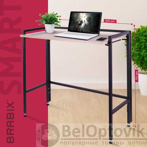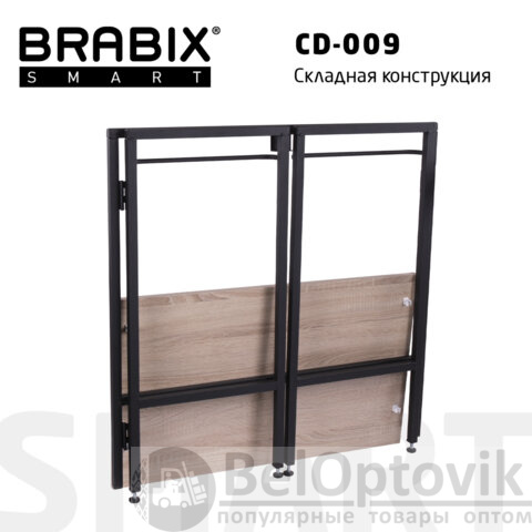 Стол BRABIX "Smart CD-009", 800х455х795 мм, ЛОФТ, складной, металл/ЛДСП дуб, каркас черный, 641874