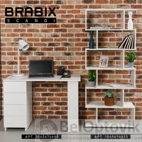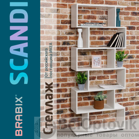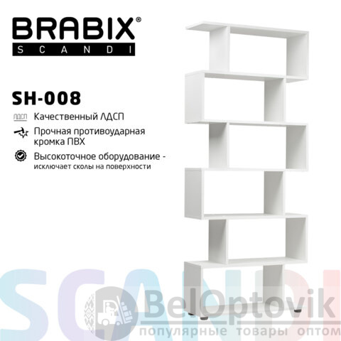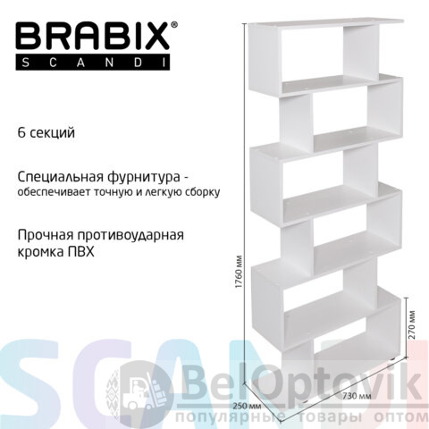 Стеллаж BRABIX "Scandi SH-008", 730х250х1760 мм, 6 секций, ЛДСП, белый, 641897, ЦБ013658-1