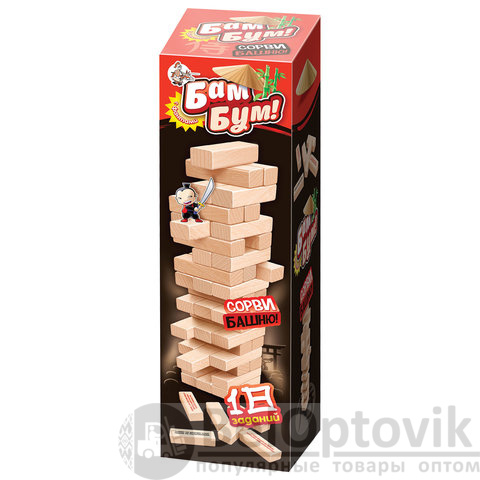 Игра настольная Башня "Бам-бум", неокрашенные деревянные блоки с заданиями, 10 КОРОЛЕВСТВО, 1741