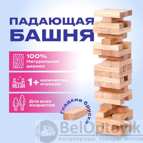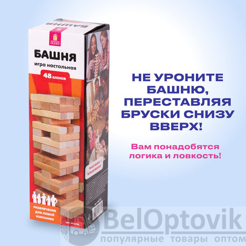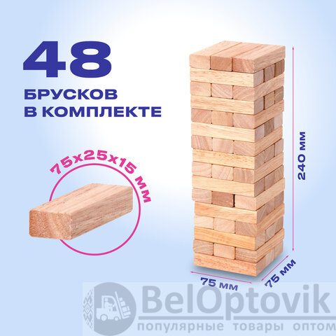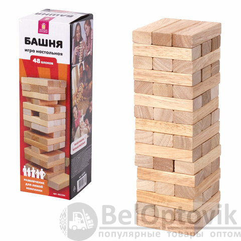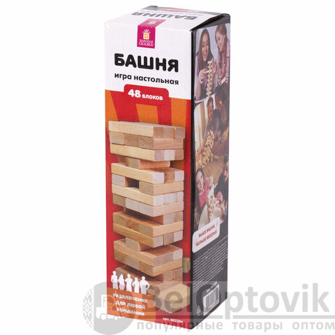 Игра настольная "БАШНЯ", 48 деревянных блоков, ЗОЛОТАЯ СКАЗКА, 662294