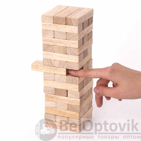 Суть игры проста: из одинаковых брусков необходимо построить башню, используя по 3 бруска в каждом ряду. Из основания башни игрокам предстоит по очереди вытаскивать по 1 бруску и перемещать их на верх башни так, чтобы она устояла. Игрок, в чей ход башня упадёт, проиграл. Выигрывает тот, кто последним поставил брусок, не обрушив башню.
