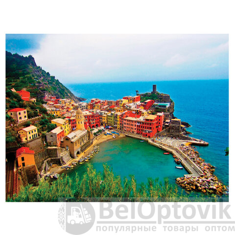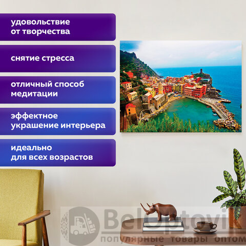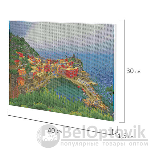 Картина стразами (алмазная мозаика) 30х40 см, ОСТРОВ СОКРОВИЩ "Прибрежный городок", на подрамнике, 662421