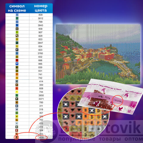 - набор квадратных страз разных цветов, пронумерованных в соответствии со схемой;