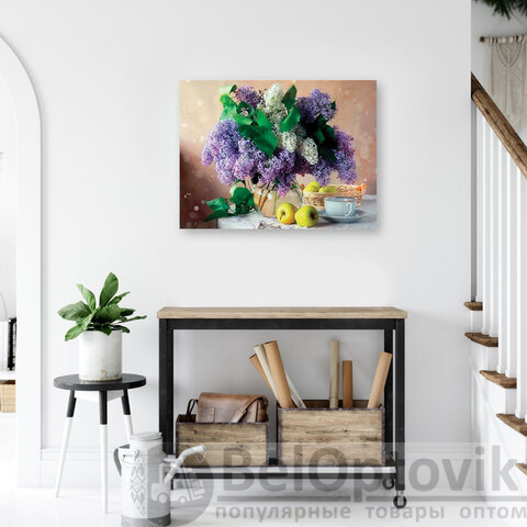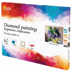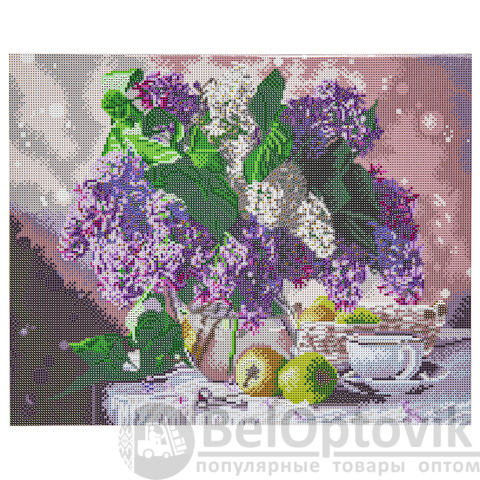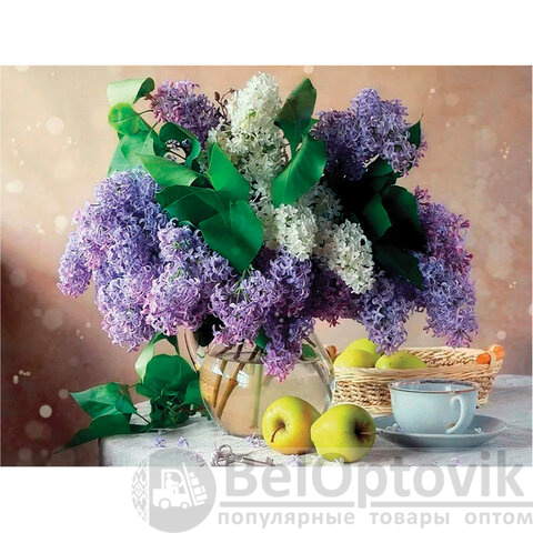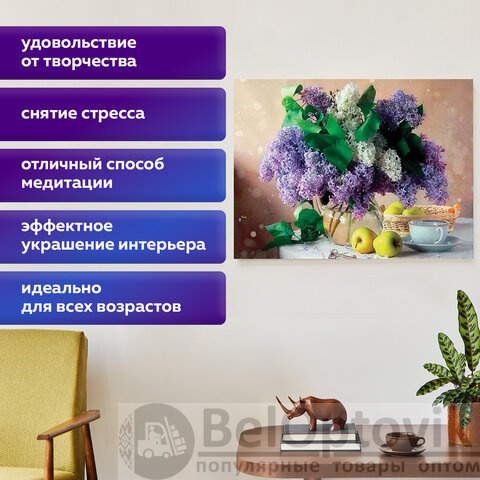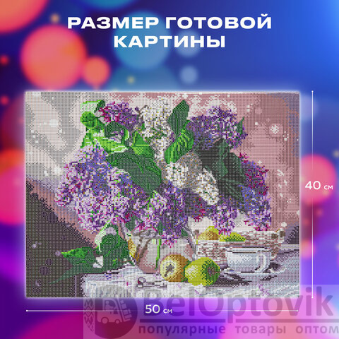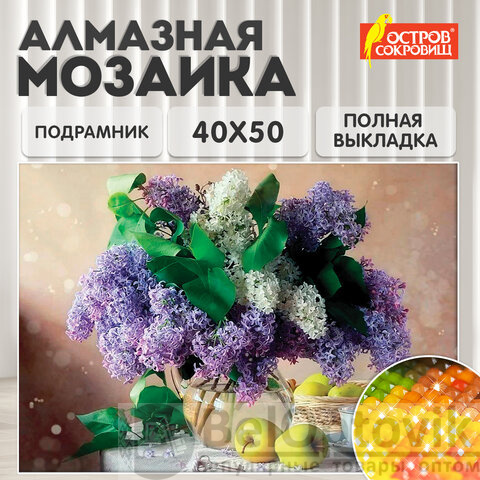 Картина стразами (алмазная мозаика) 40х50 см, ОСТРОВ СОКРОВИЩ "Букет сирени", на подрамнике, 662430