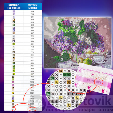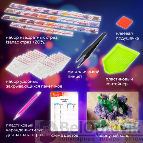 Техника алмазной мозаики проста с исполнении и не требует владения никакими специальными навыками. Все необходимые для работы материалы и инструменты входят в набор, подробная инструкция находится внутри упаковки.