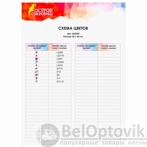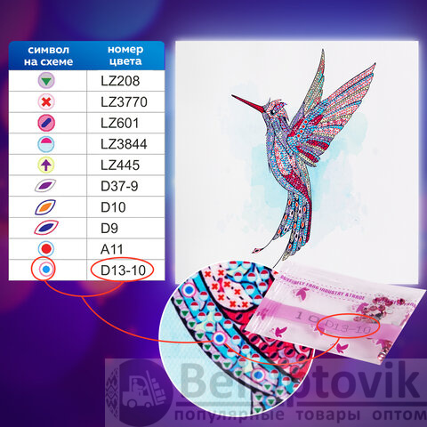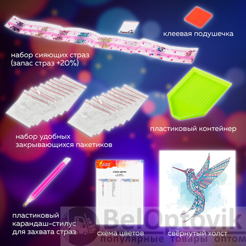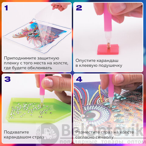 - набор сияющих страз разных цветов, пронумерованных в соответствии со схемой;