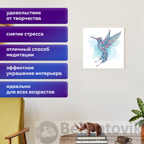 Картина стразами (алмазная мозаика) сияющая 30х30 см ОСТРОВ СОКРОВИЩ "Красочный полёт", без подрамника, 662444