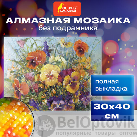 Картина стразами (алмазная мозаика) 30х40 см, ОСТРОВ СОКРОВИЩ "Букет с анютками", без подрамника, 662574