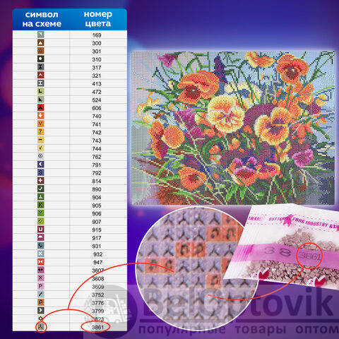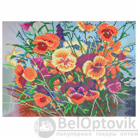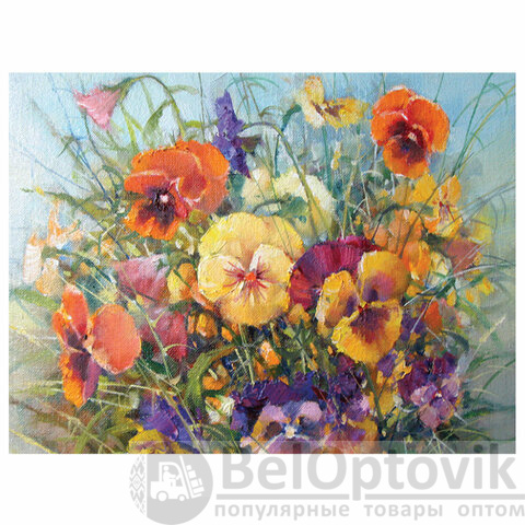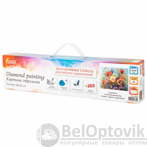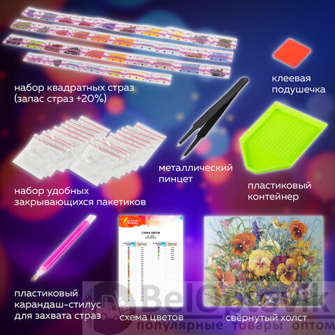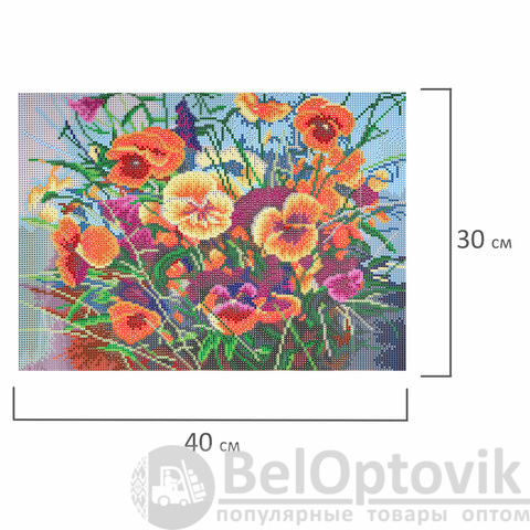 Картина стразами "Букет с анютками" представляет собой эксклюзивный сюжет по картине российского художника Калашниковой Е. В. и включает в себя: