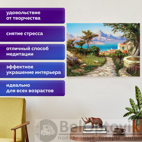 Картина стразами "Город у моря" основывается на одноименном произведении российского художника Алексея Милюкова.