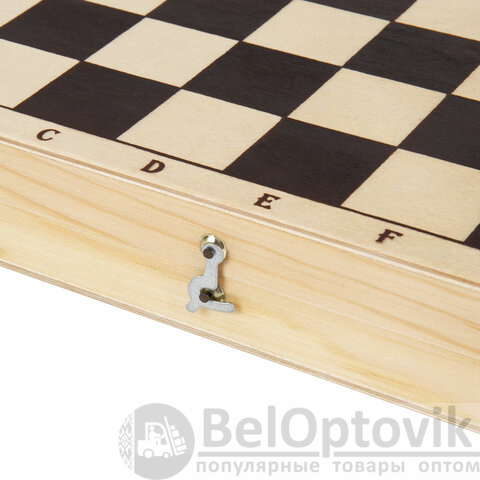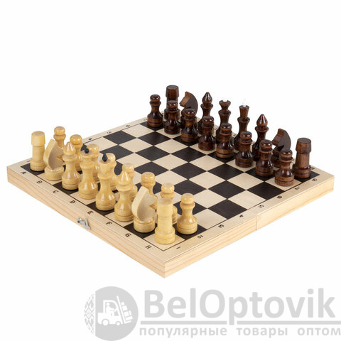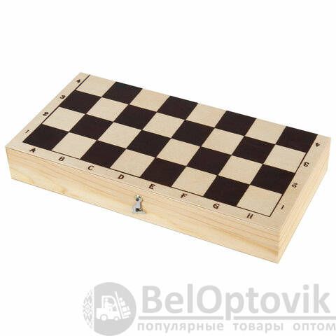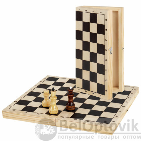 - раскладная доска для игры в шахматы размером 29х29 см (в собранном виде – 29х14,5 см), размер клеток – 4,6х4,6 см;