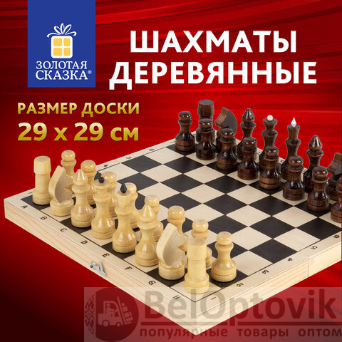 Шахматы обиходные, деревянные, лакированные, глянцевые, доска 29х29 см, ЗОЛОТАЯ СКАЗКА, 665362