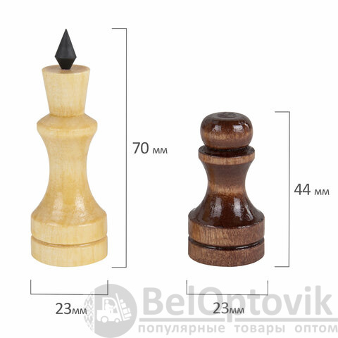 - высота от 4 см (пешки) до 7 см (король),