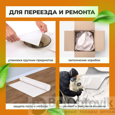 Газетная бумага BRAUBERG применяется для упаковки товаров, цветов, в качестве укрывного материала во время ремонта и при переезде. Кроме того, крафт-бумага подходит и для письма, рисования и создания различных творческих поделок.