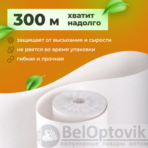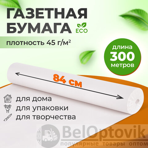 Бумага поставляется в рулоне. Ширина рулона – 840 мм. Длина рулона – 300 м. Плотность 45 г/м2 позволяет упаковывать в нее не только продукты и товары повседневного спроса, но и строительные материалы, имеющие большой вес. Данная бумага обладает воздухопроницаемостью, что способствует длительному сохранению товаров, защищает их от высыхания, сырости и плесени.